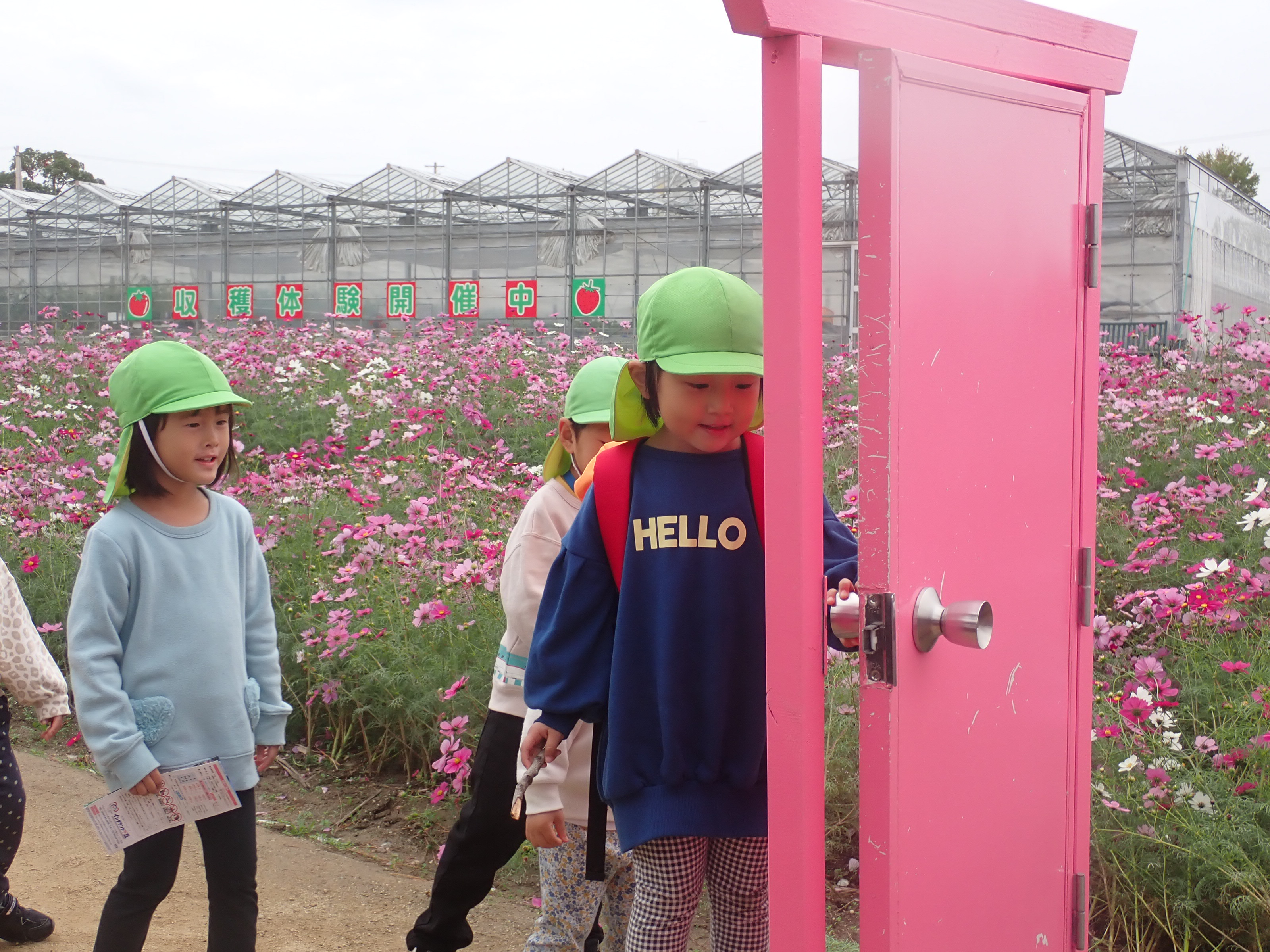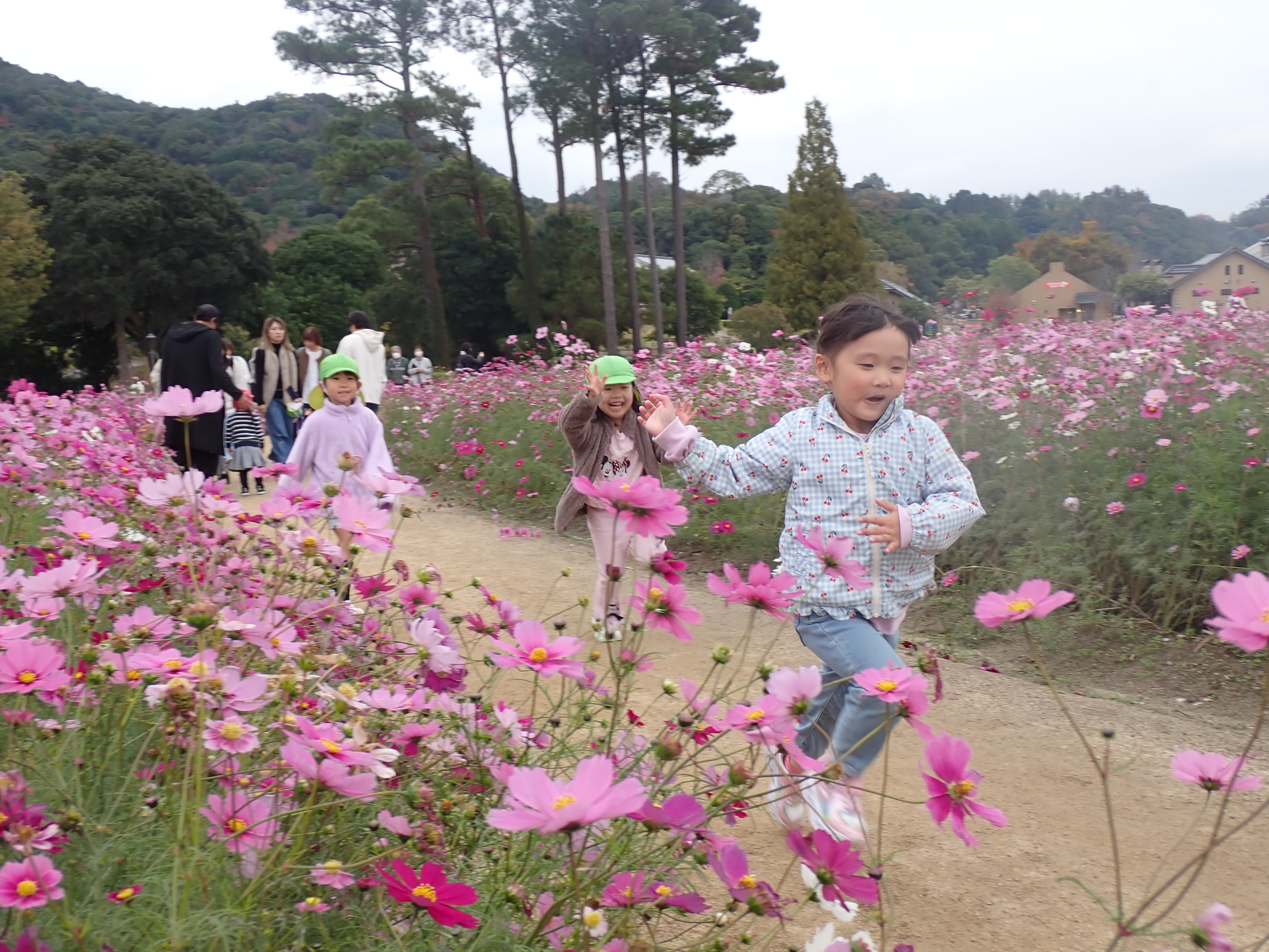 イングランドエリアには秋のコスモスが沢山咲いていて、走り回ったり匂いを嗅いでみたりと子どもたちも大喜びです。